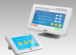 - Phản hồi của khách hàng: Phản hồi QoS được tích hợp. Người dùng có thể quản lý bảng câu hỏi xếp hạng được hiển thị trên các thiết bị phản hồi của khách hàng. Xếp hạng của khách hàng được ghi lại và trình bày theo thời gian thực.
